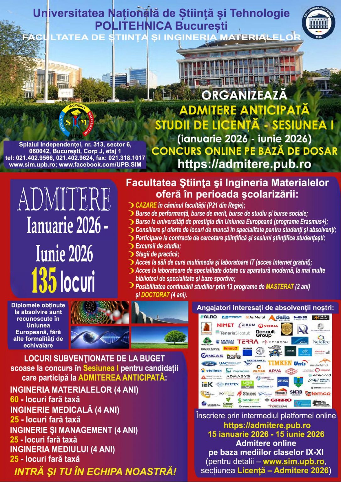 FELICITĂRI! EȘTI CANDIDAT ADMIS ȘI ÎNMATRICULAT LA FACULTATEA DE ȘTIINȚA ȘI INGINERIA MATERIALELOR!